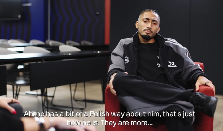 拉菲尼亚:他人很好,他有点那种波兰人的性格,有时候他比较像那样高冷,有时候他又很爱开玩笑,刚开始和他相处时,你可能会觉得有点怪,但后来你就习惯了。